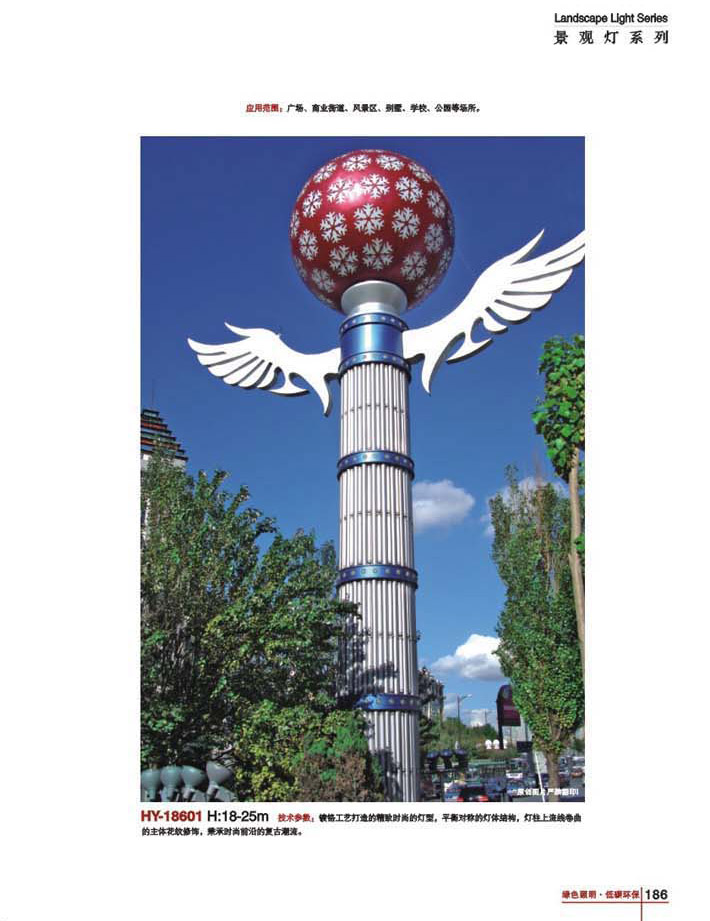 用途:景觀燈適用市政工程、園林亮化工程和公園、開發(fā)區(qū)、別墅區(qū)、廣場等戶外路燈照明工程